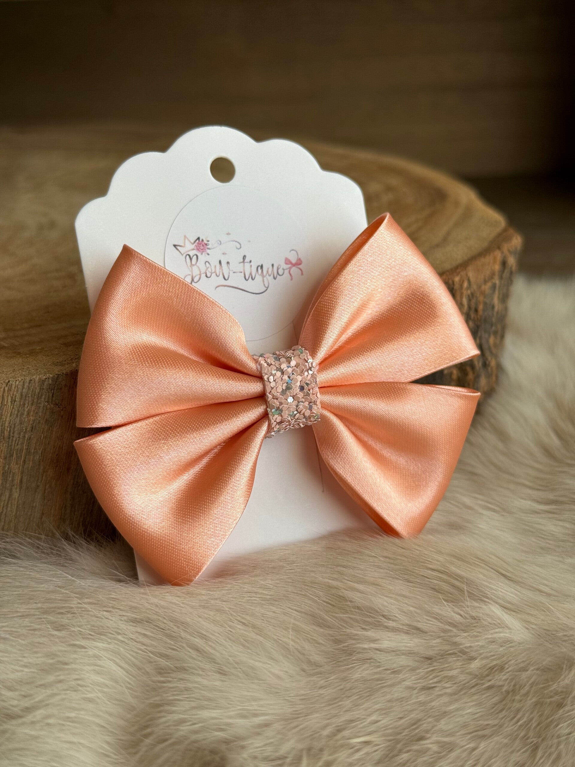 Satijnen Strik Glitter Peach