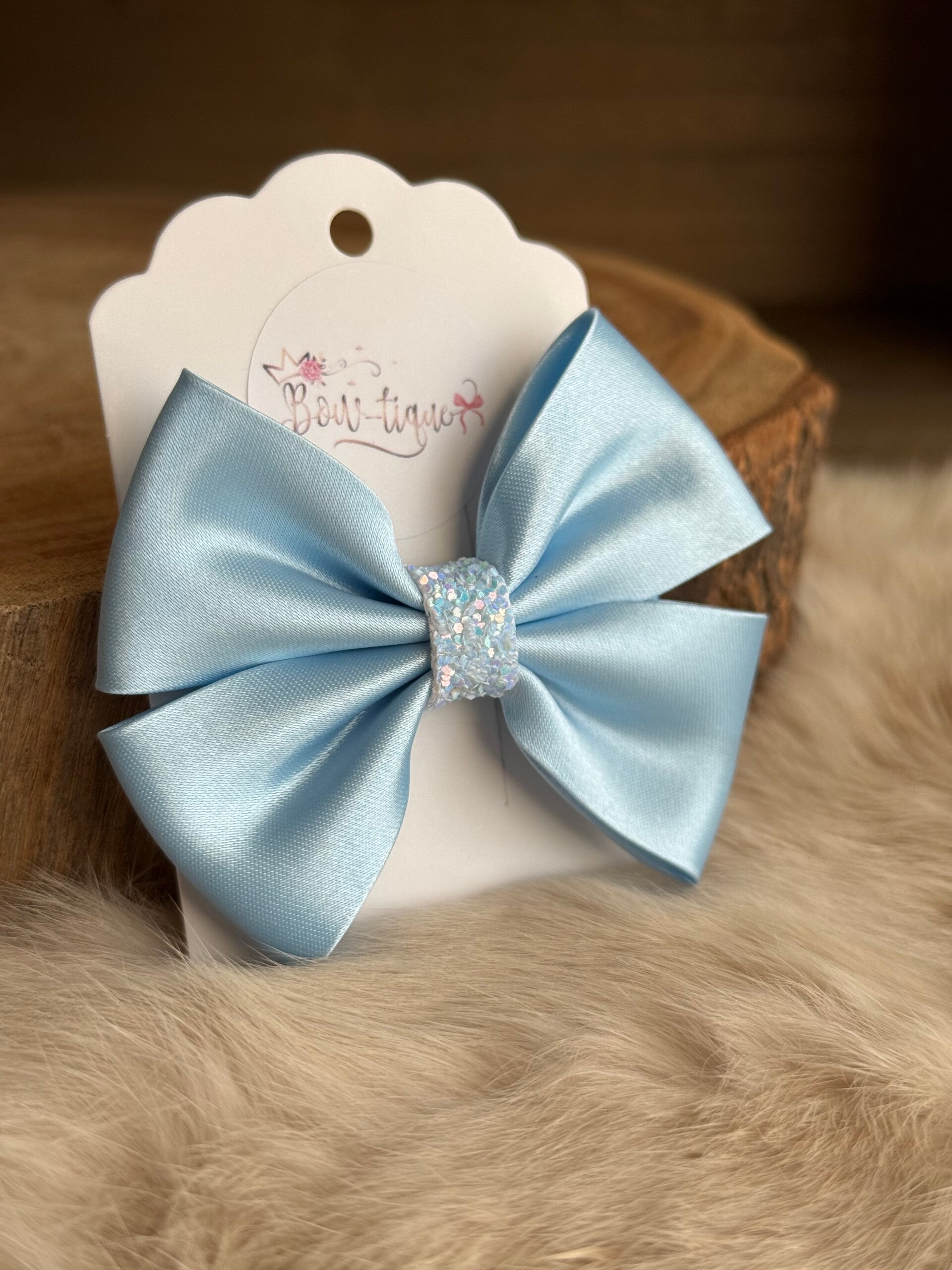 Satijnen Strik Glitter Sky Blue